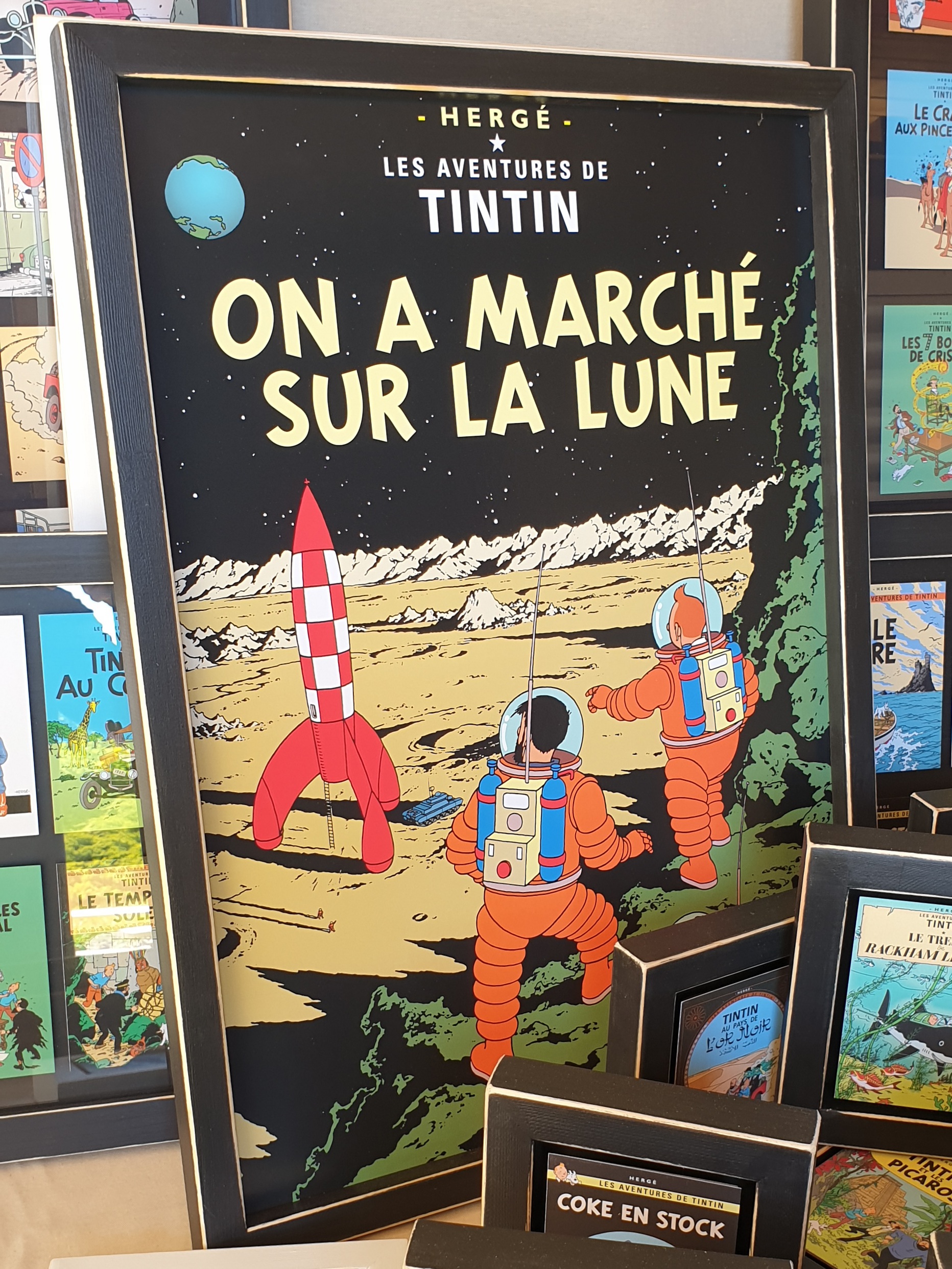 Et presentem els quadres emmarcats amb les làmines dels cómics de Tintín i Milú.